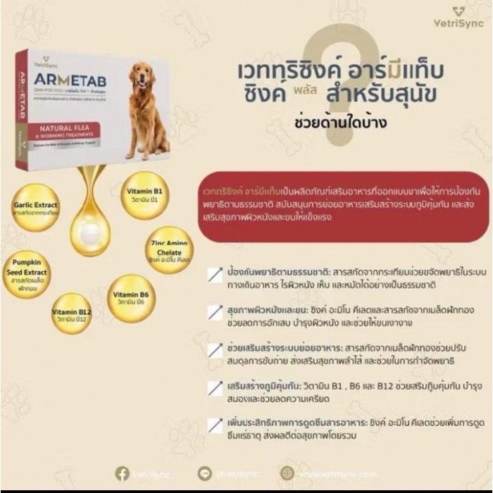 ARMETAB ZINC+ — это натуральная биологически активная добавка (БАД) для собак, предназначенная для комплексной защиты от паразитов и поддержки общего состояния здоровья. В отличие от жестких химических таблеток, этот продукт позиционируется как натуральное средство (Natural Flea & Worming Treatments).
