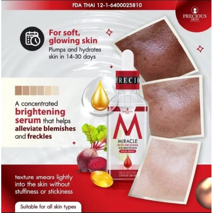Это косметическое средство — Miracle Anti-Melasma and Brightening Facial Serum от тайского бренда Precious Skin Thailand. Это концентрированная сыворотка, предназначенная для борьбы с пигментацией и улучшения тона кожи.