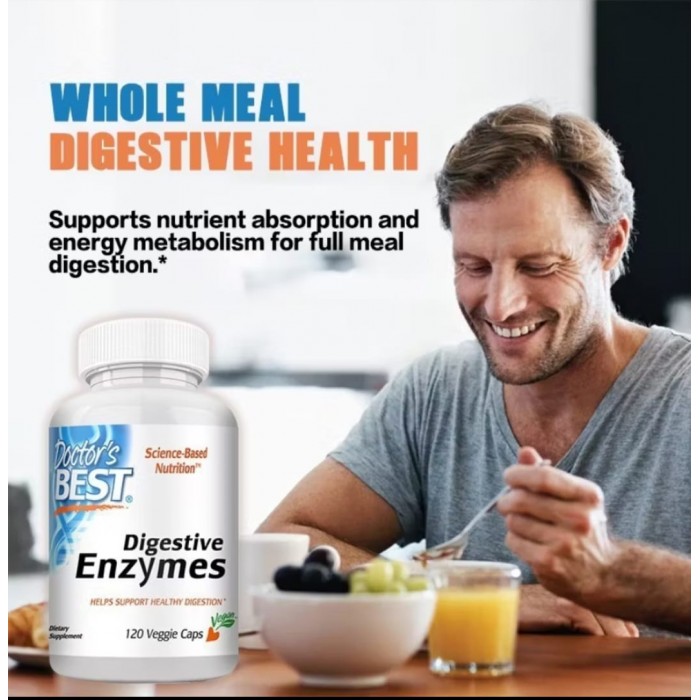 Doctor's Best Digestive Enzymes, представляет собой комплекс пищеварительных ферментов (энзимов) в виде вегетарианских капсул. Это диетическая добавка (БАД), предназначенная для поддержания здорового пищеварения.