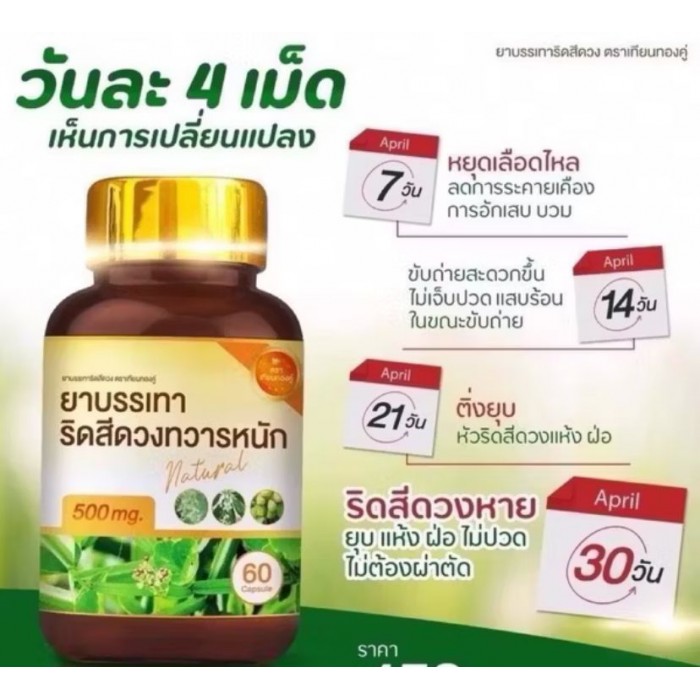 Яа Бантхао Рит Сидуанг Тхаваан Нак лечение тяжелого геморроя (от 1 до 4 стадии) 60 капсул