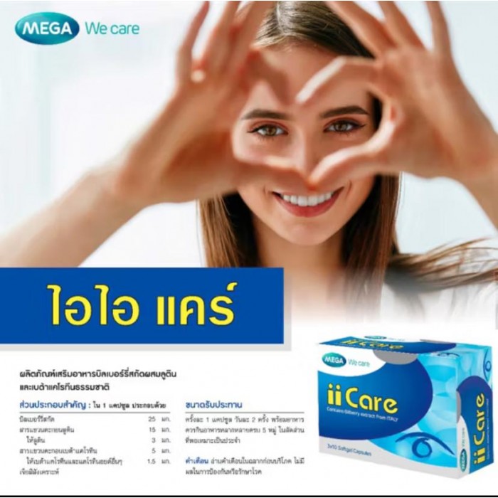 «MEGA We care ii Care» — это биологически активная добавка (БАД) в форме мягких желатиновых капсул, предназначенная для поддержания здоровья глаз и улучшения зрения.