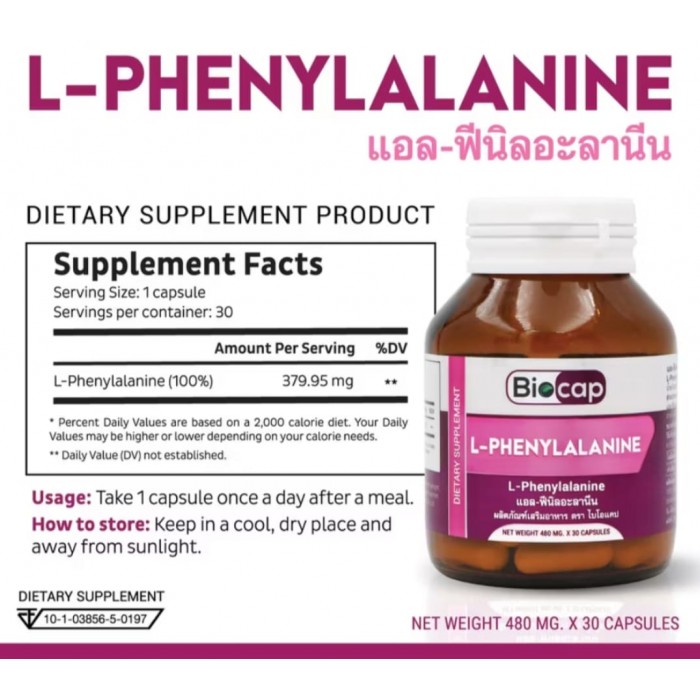 Это диетическая добавка (биологически активная добавка) под названием L-Phenylalanine (Эл-Фенилаланин), бренд Biocap.