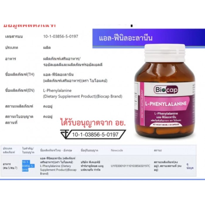Регистрационный номер (FDA/อย.): 10-1-03856-5-0197 (Номер, выданный Управлением по контролю за продуктами и лекарствами Таиланда, что означает, что продукт одобрен).