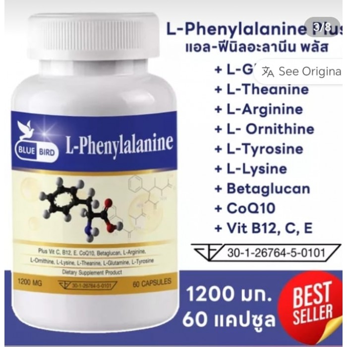 Это биологически активная добавка (БАД) тайского бренда Blue Bird, основным компонентом которой является аминокислота L-Фенилаланин.