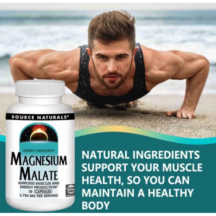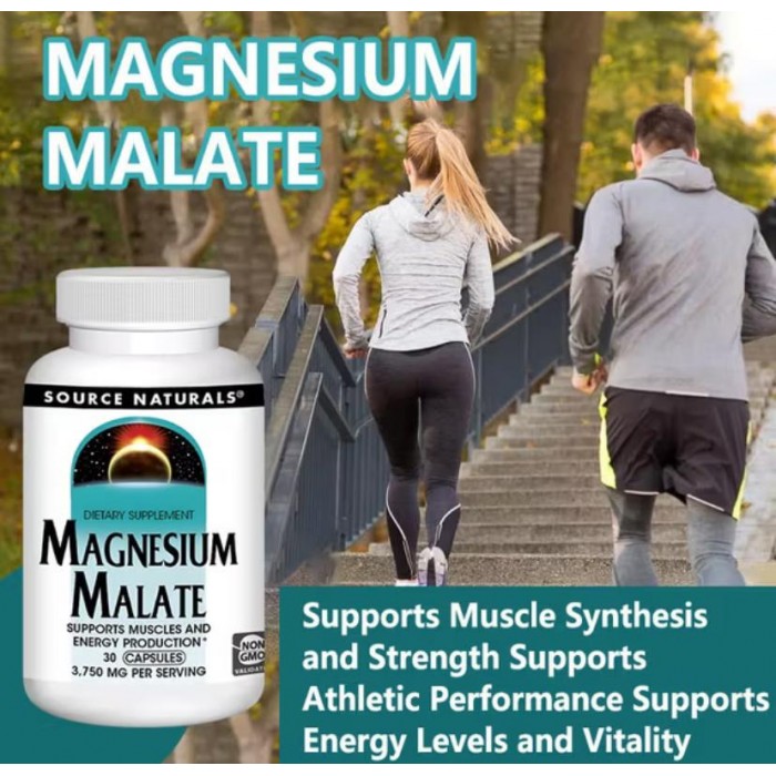 Source Naturals Magnesium Malate (Магний Малат)30 капсул для повышения уровня энергии и силы мышц