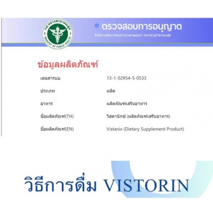 13-1-02954-5-0533 (Это номер регистрации в Управлении по контролю за продуктами и лекарствами Таиланда, что указывает на официальное одобрение продукта как пищевой добавки).