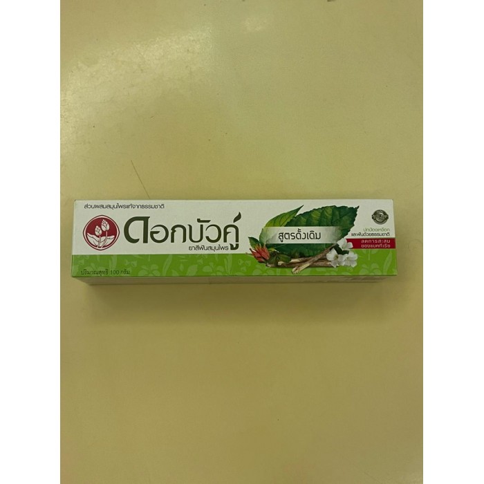 Эта паста рекомендуется при чувствительных зубах и для лечения парадонтоза и парадонтита и гингивита. Оригинальная зубная паста темно-кофейного цвета имеет специфический растительный вкус, изготовлена исключительно из натуральных составляющих. Тайская зубная паста содержит костную ткань каракатицы, мисвак (зубощеточное дерево), клинакантус нутанс, диоксид кремния (натуральный минерал), стреблюс шершавый, муррайа метельчатая, масло мяты перечной, эвкалиптовое масло, кристаллический ментол.